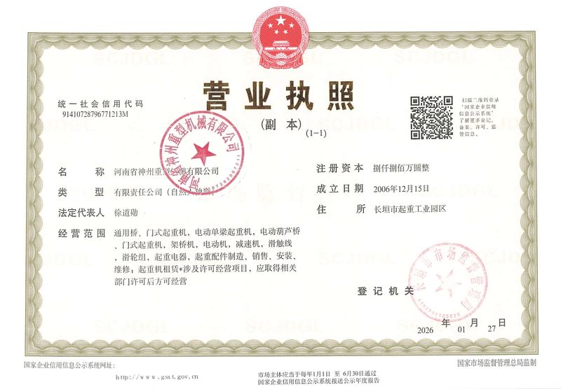 河南省神州重型機械有限公司 專注起重機制造多余年